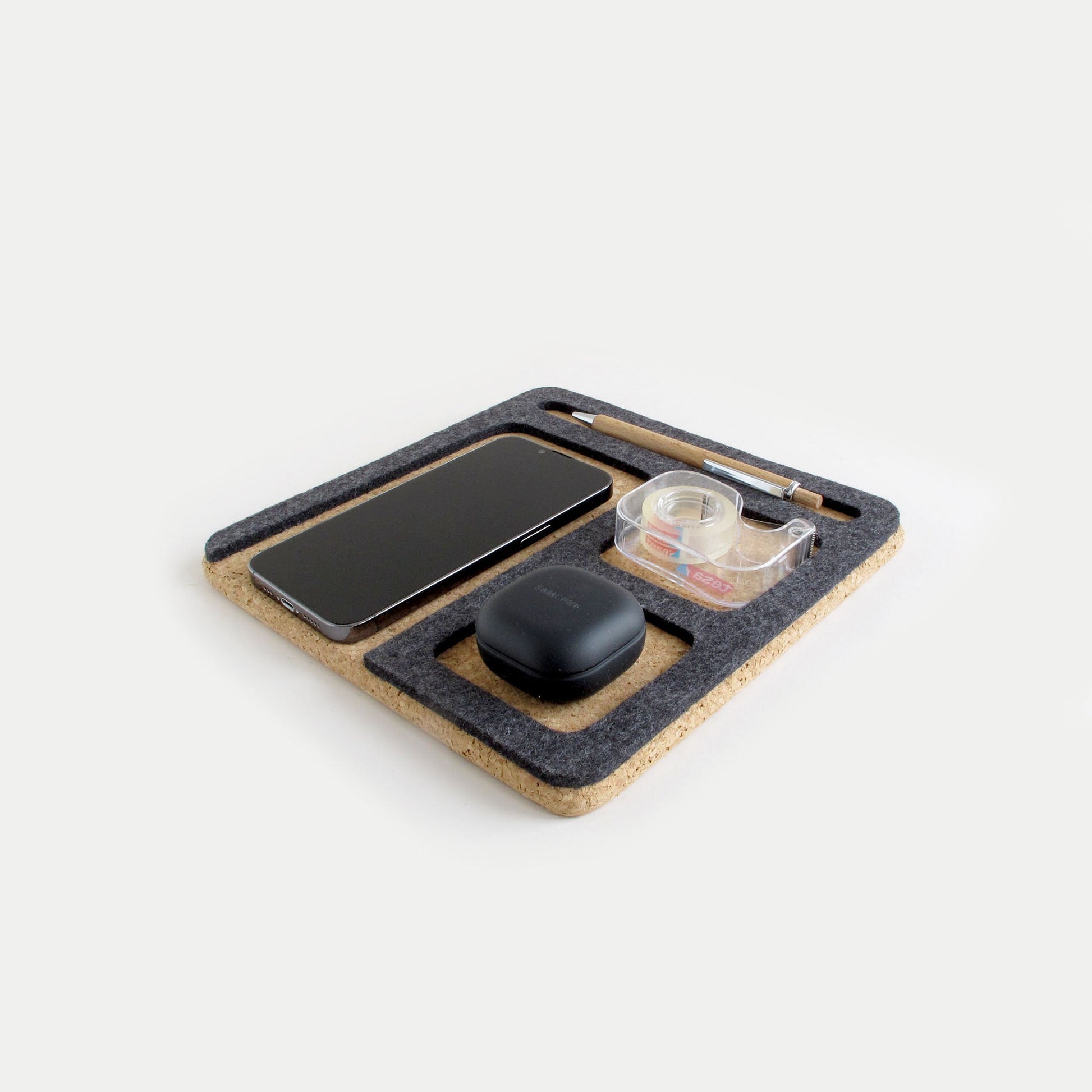 Organizer für Handy, Notizblock, Stift, Schlüssel & Co. | aus Filz und Kork | anthrazit