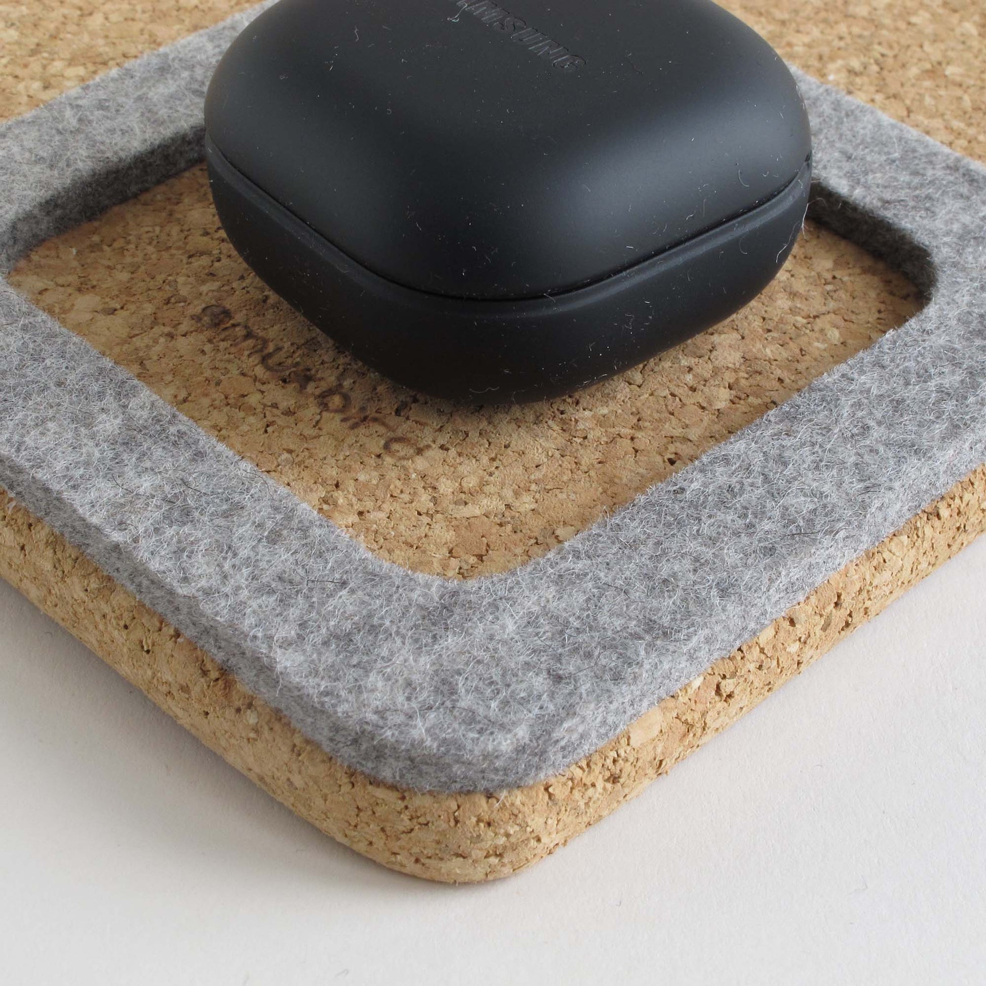 Organizer für Handy, Notizblock, Stift, Schlüssel & Co. | aus Filz und Kork | hellgrau